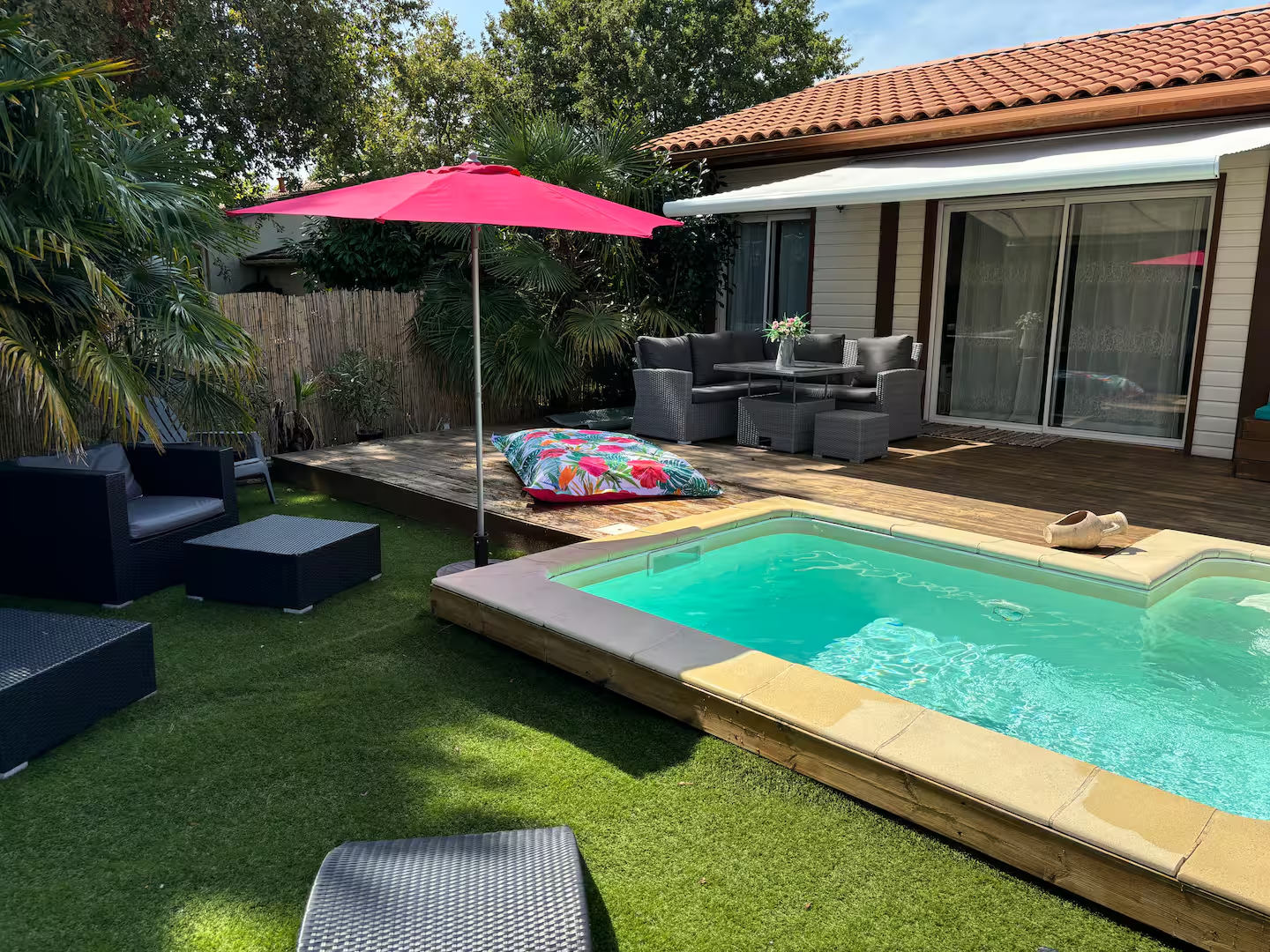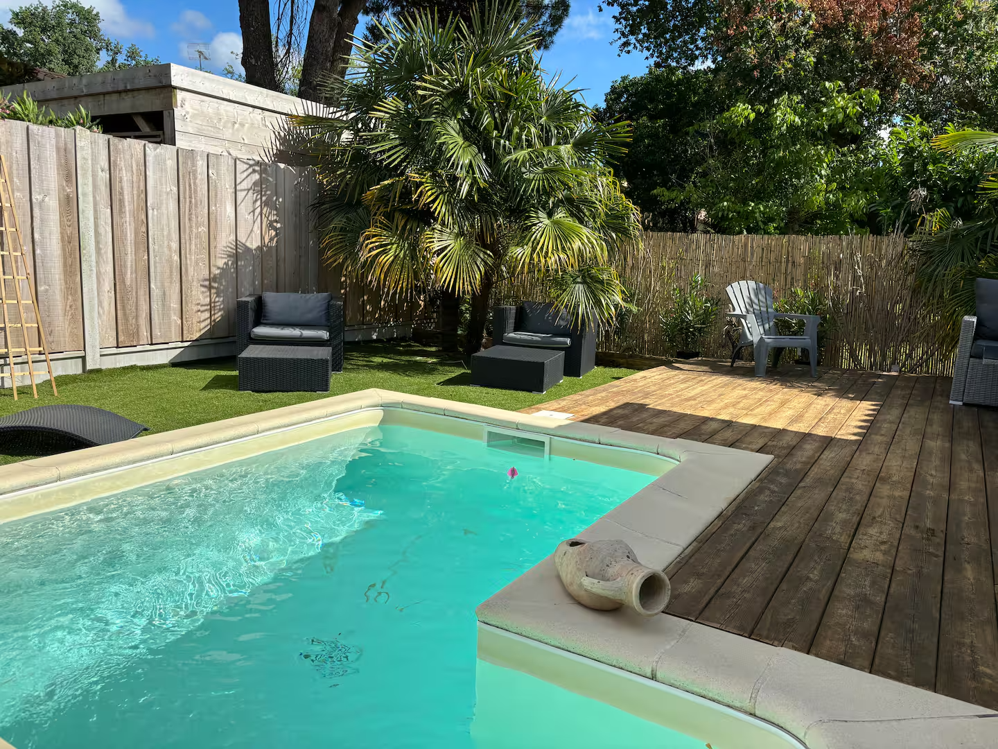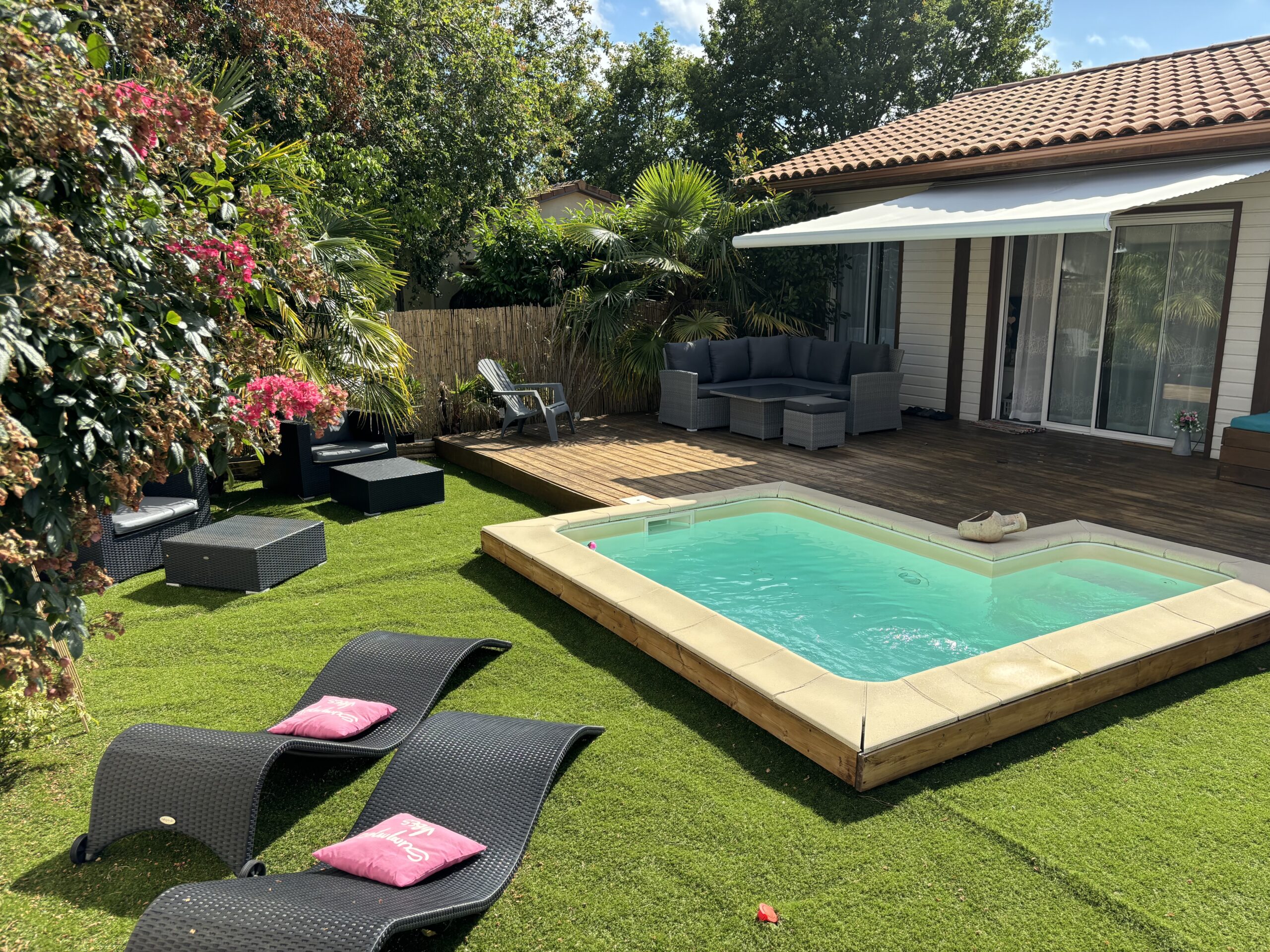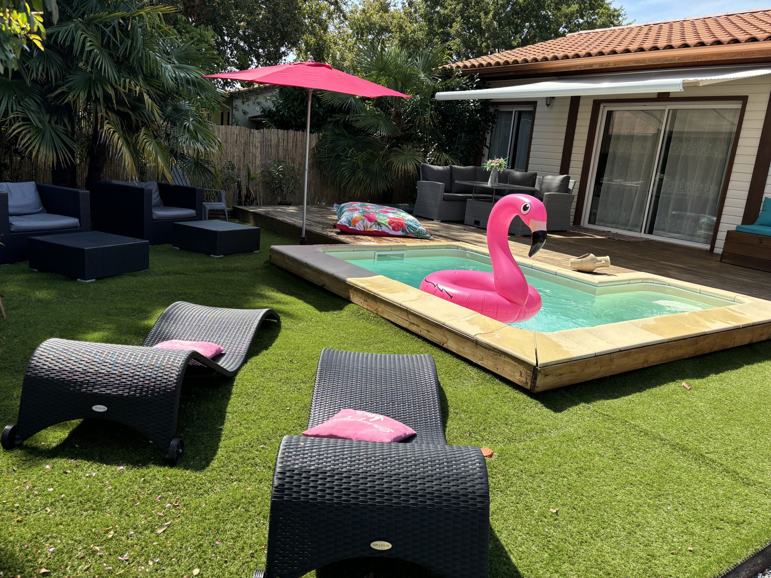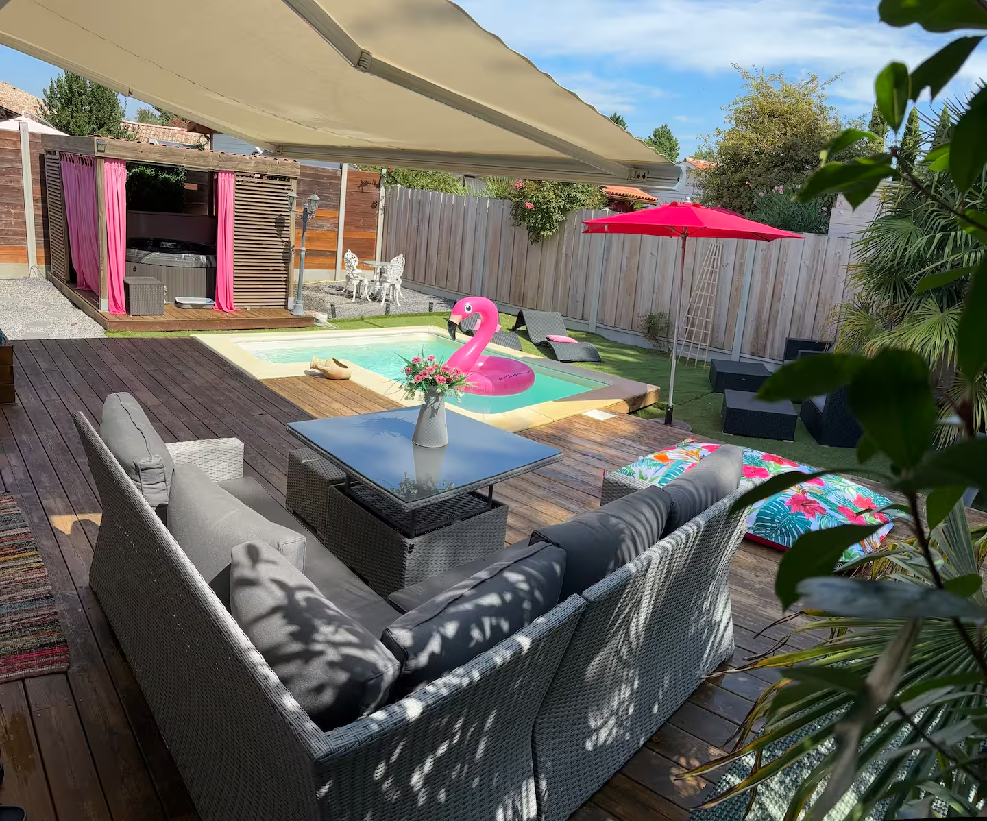 Profitez du jacuzzi en toute intimité, partagez un moment de relaxation au bord de la piscine ou savourez un instant à deux dans votre espace extérieur privatif.