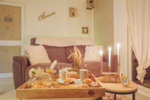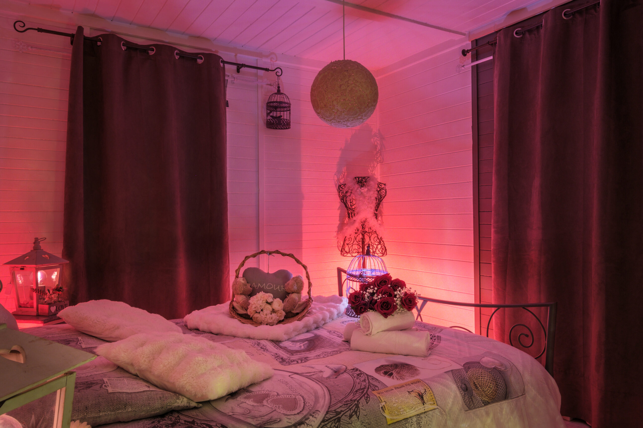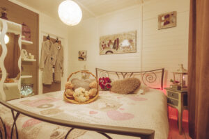 – Chambre et chalet décorés en mode romantique
