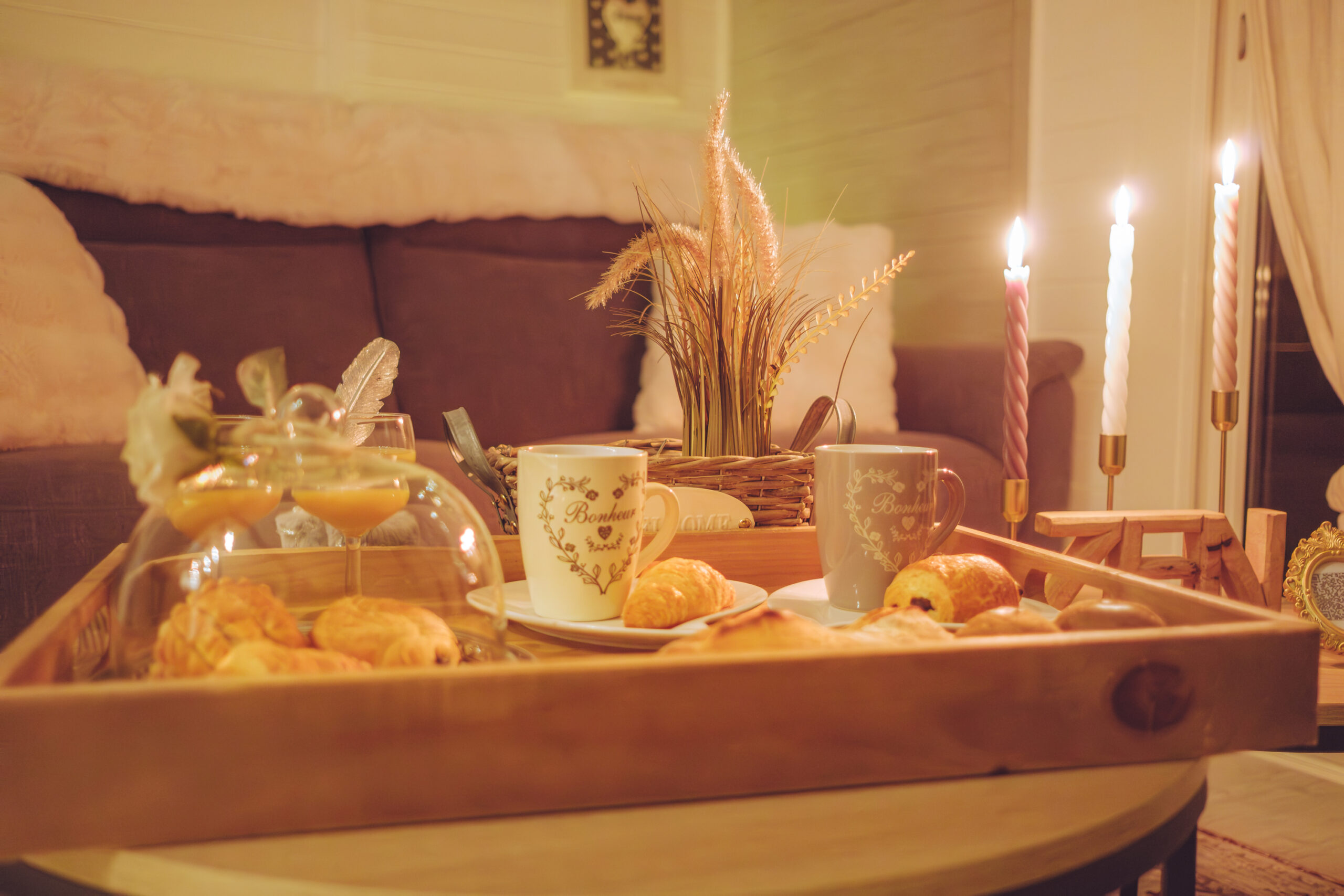À votre arrivée, tout est prêt pour créer une ambiance romantique :